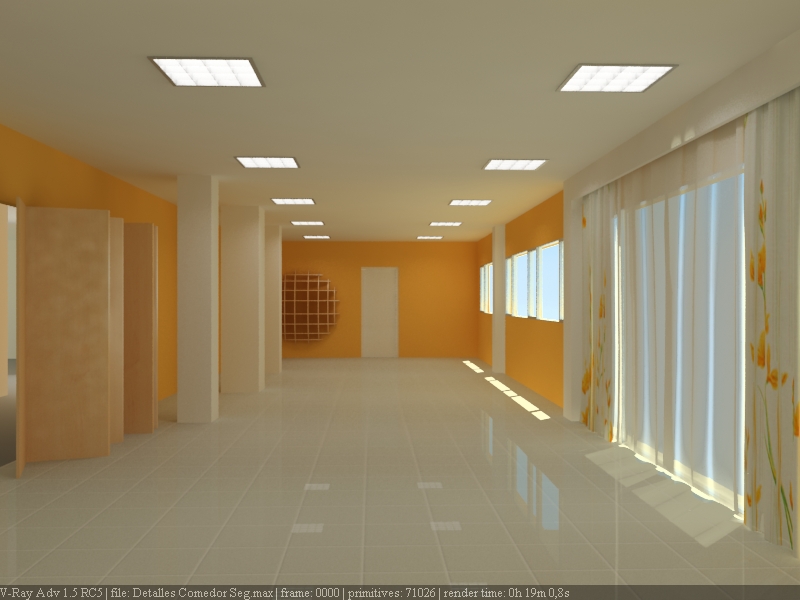 Tengo esta escena de un gran comedor con varios ventanales. He puesto un Vray Sun y cuando me ha preguntado si quería que me hicera un mapa de entorno le he dicho que sí. El color del environment en el Vray lo tengo blanco puro, y no consigo que salga así. Por alguna razón sale completamente azulado. Os pongo aquí el render sin objetos, y una fotografía del resultado que busco, que es un color blanco puro con mucha intensidad.
