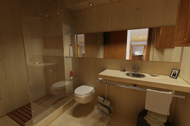 Hola. Tengo un problema con este render lo estoy haciendo con 3ds max9 y Vray 1.50. Como podréis ver en las fotografías los objetos que están junto al lavabo no proyectan sombras y no entiendo porqué, son Editable Poly he probado cambiando parámetros en los focos y no sé si el problema es de los objetos o de los focos porque en la pared del espejo tampoco se refleja la luz de estos, si alguien puede ayudarme, lo agradecería, gracias.