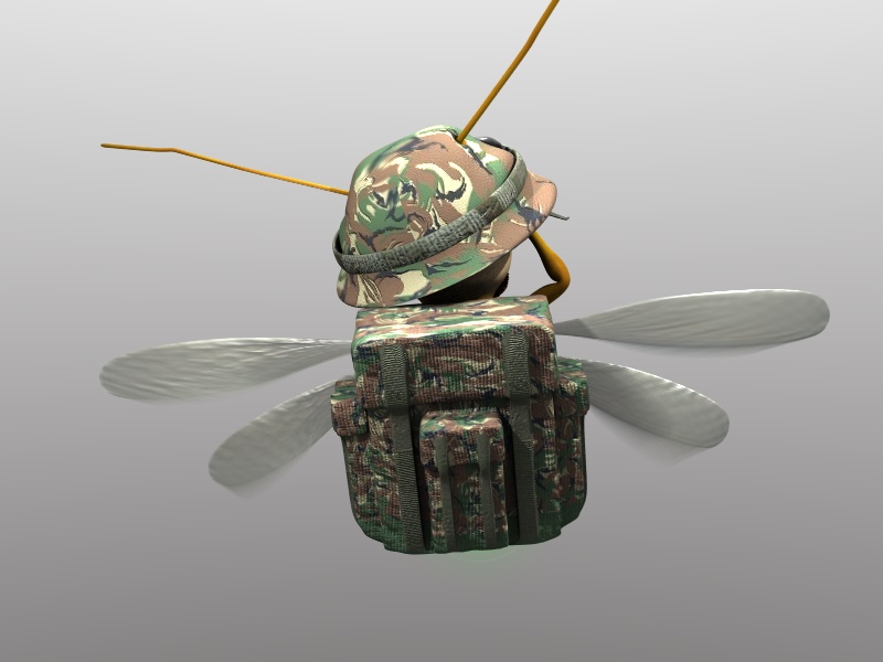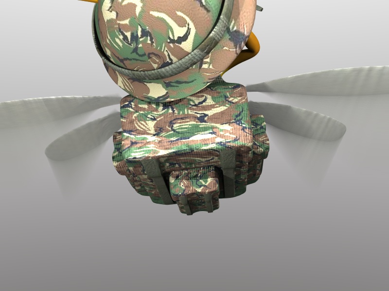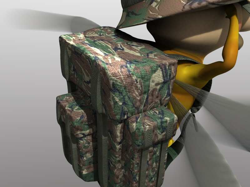 La idea es dar una imagen del personaje firme y saludando entusiasta. Típico ex-nam con aspecto desaliñado y descuidado (un estilo borrachuzo) como el compañero paralítico de Forrest Gump.