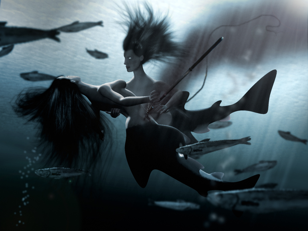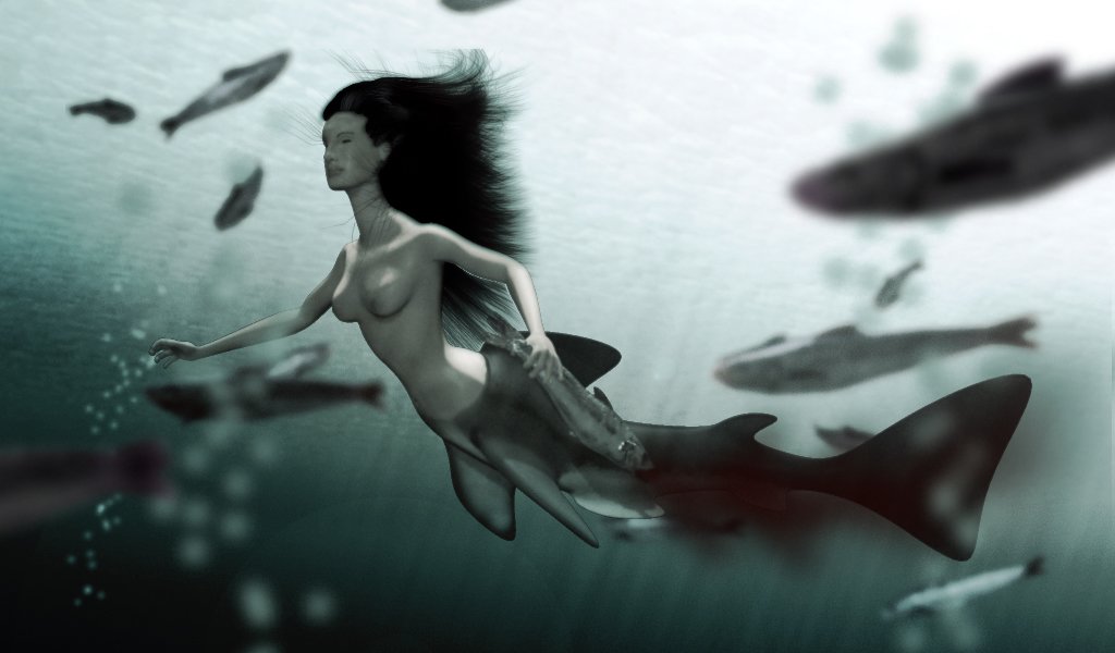 Por lo demás están excelentes las proporciones de ambos, la mujer y el tiburón. Vuelvo a decirte, quizás si fucionas más en la espalda de la mujer la dorsal (aleta del tiburón) quedaría más armónico.