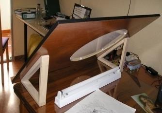 A mí personalmente el hacerla en forma de disco no me parece que tenga ninguna ventaja especial. Hoy en día con los sistemas de capturas electrónicos, creo que una buena mesa de luz cuadrada y medianamente grande resulta más cómoda. Pero vamos, para gustos los colores.