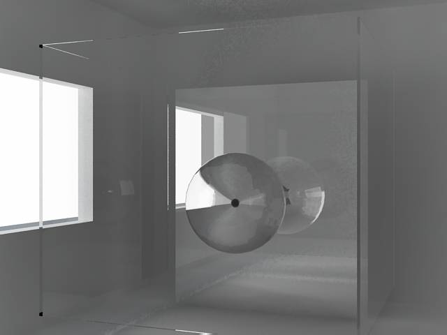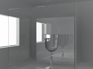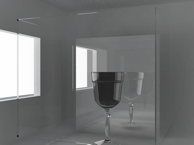 Hola a todos, tengo un problema con unas copas que están dentro de una vitrina el problema es que cuando tiene el vidrio de la vitrina, las copas se obscurecen y parecen de metal, pero en el reflejo de atrás se ve bien. Hice una escena parecida para que se den una idea y pongo la imagen del resultado que tengo. Gracias.