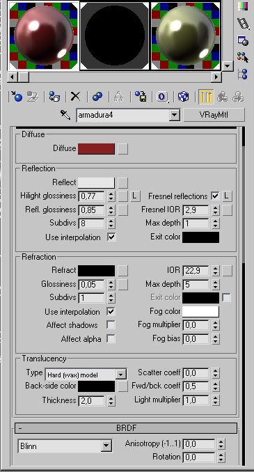 Si no has usado antes materiales Vray échale un vistazo a algún tutorial para entender cómo funciona y práctica mucho, mucho.