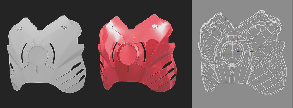 Un update de la coraza por la parte delantera, con y sin material.