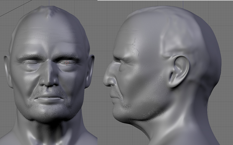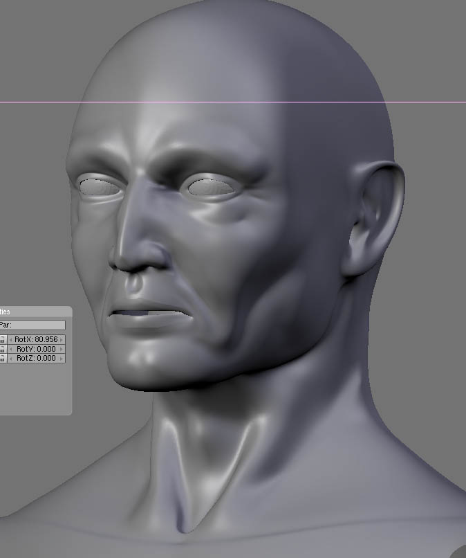 Pero yo no la daría por terminada tampoco. Pasa un poco en modelado como con el snaping de las animaciones. Las curvas que presentas son un poco lentas por así decirlo. Sobre eso supongo que, habrás pensado en marcar las arrugas más profundamente donde pida (las patas de gallo, los surcos de la cara, frente etc). Saludos.Hola Toni, lo que es la cabeza la veo bastante perfecta (muy buena) y detallada, ¿la hiciste por polys o directamente esculpida? El cuerpo bueno aún está en proceso así eso no digo nada.