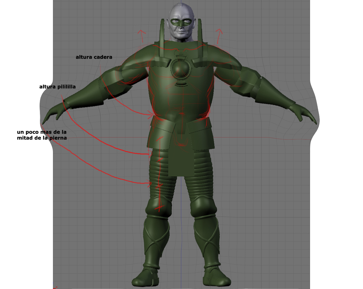 Intenta imaginar el cuerpo por debajo de la armadura, y sacar las proporciones.