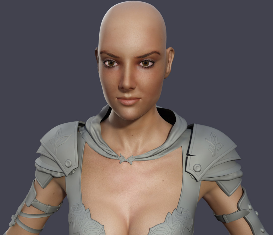 Bueno, pues aquí tenéis un nuevo update con el pelo. He de hacer algunos retoques en algunas texturas, pero no tengo grandes cambios previstos. Ahora viene la parte más divertida, posarla correctamente (a ella y a las más de 150 piezas de armadura que la acompañan) y añadirle un escenario decente.