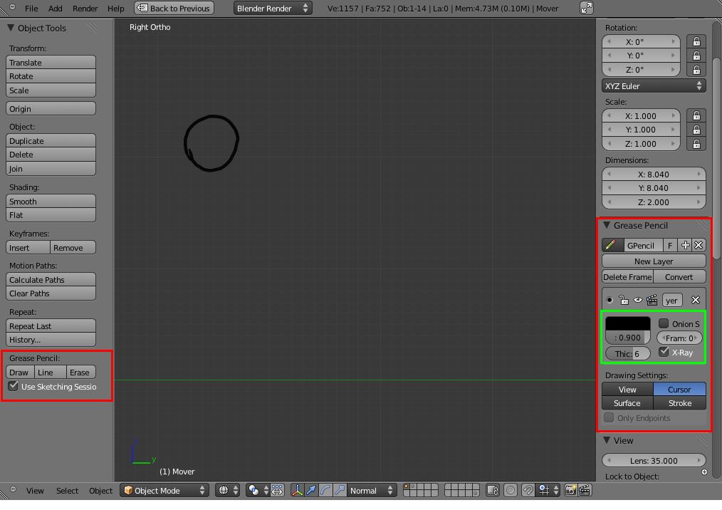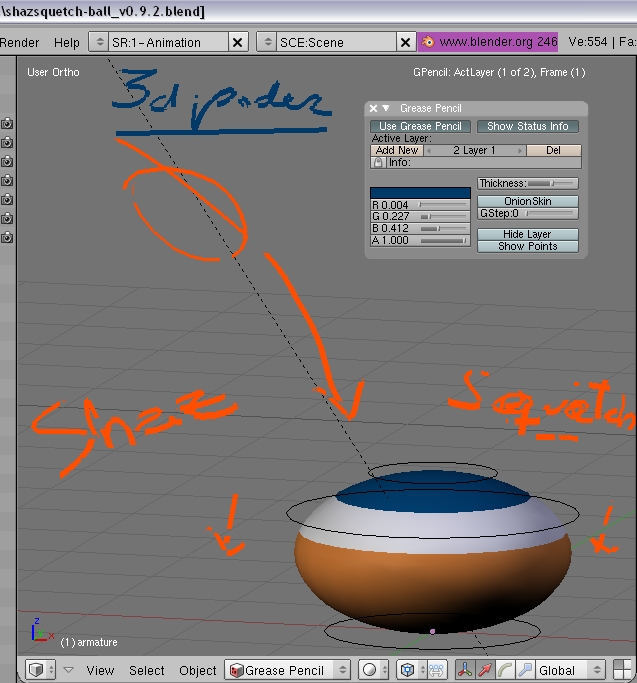 Un saludo. Recientemente he estado haciendo algunas pruebas con la herramienta -Grease Pencil- En Blender, estoy usando la versión 2.57.