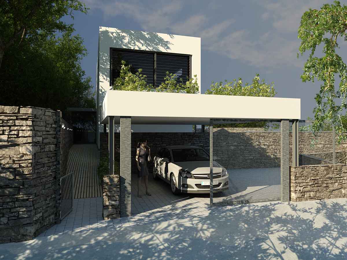 Gracias a todos por los comentario, ya de paso añado otra vista más de la entrada a la vivienda. A ver qué el tema de la vegetación se ha comento más atrás, son todo proxy de librerías y Onyx.