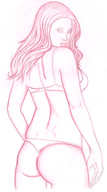 Y los pezones echando fuego, como a mí me gusta. Pues sí, el bichejo tiene la línea más clara, le puedes definir las manos, limpiar un poco con la goma y de cabeza al Inkscape, que te saque la tinta.