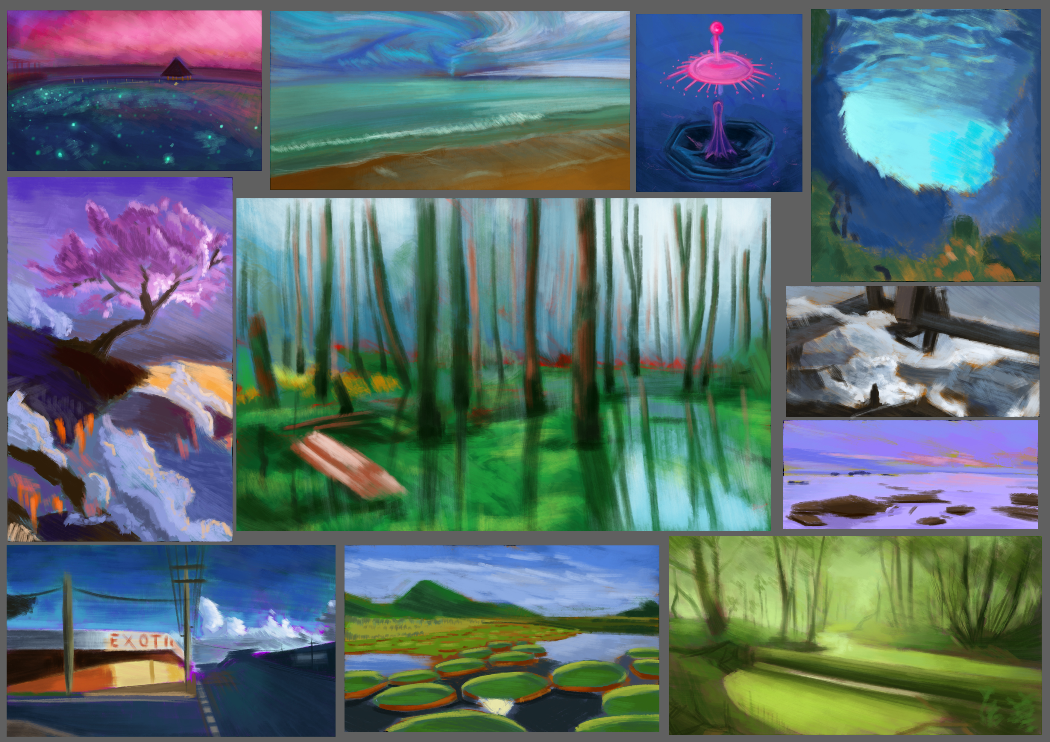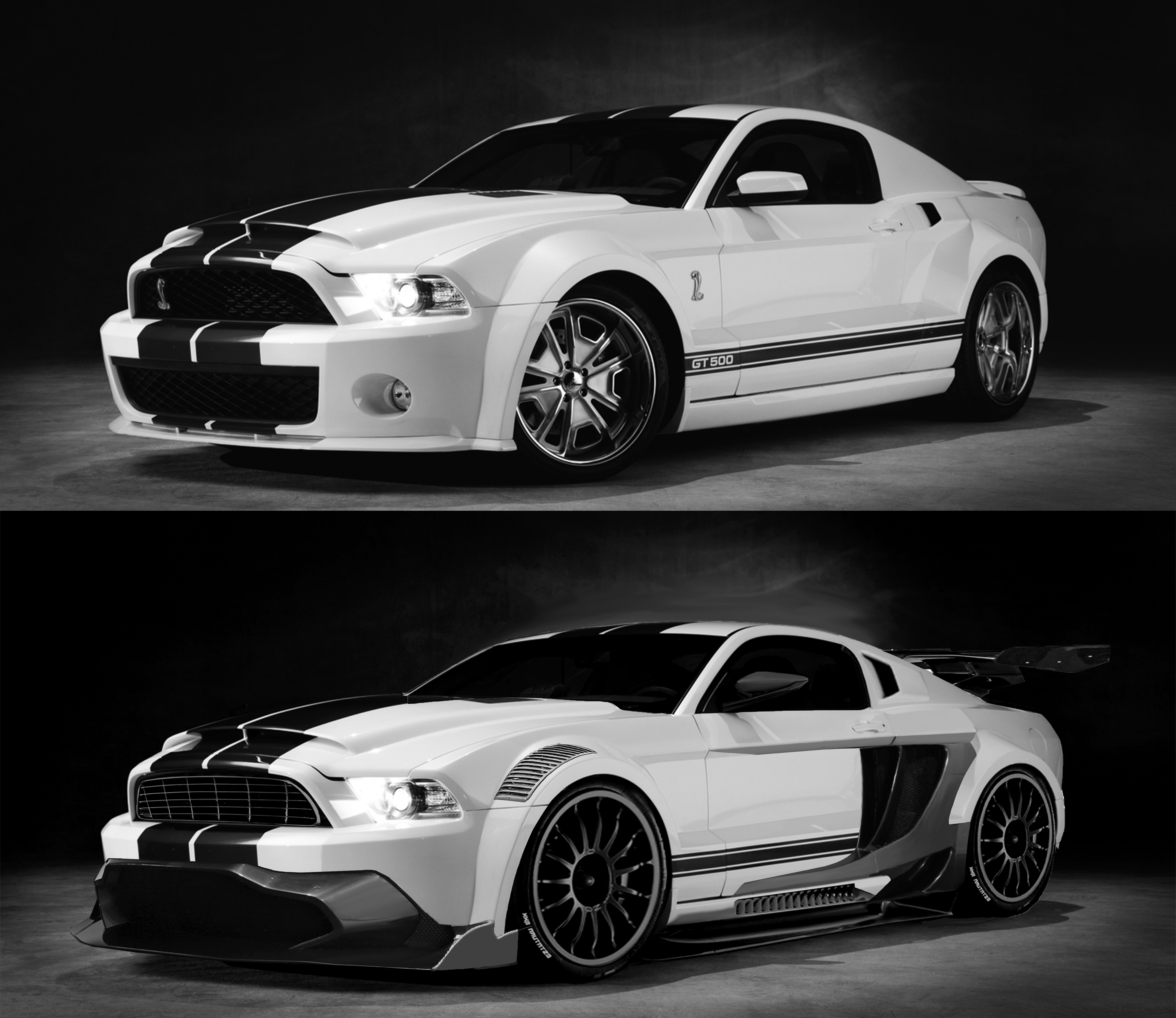 El primero es un photobasing de un shelby gt 500, el tercero es un kitbashing de ZBrush y el cuarto un estudio de thumbnails.
