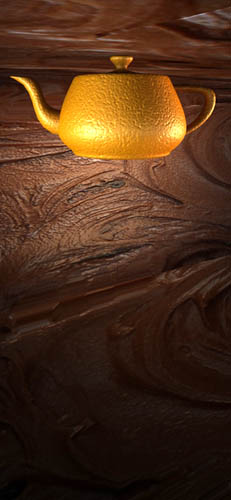 Fondo de chocolate al 90% de cacao amargo, sobre tetera de naranja valenciana.Precisamente. Participad en el reto de la tetera sobre fondo soso.