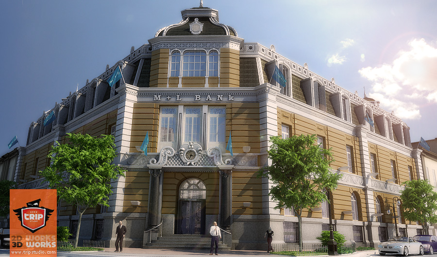 Qué bueno que lo ampliaste un poco se nota mejor los detalles de las sombras, creo que se vería mejor si quitaras las personas y como algo muy personal creo que si tu logotipo lo pusieras arriba en el celaje se podría haber notado mejor las dos caras del edificio ya que una tiene iluminación y otra no y poder observr mejor todos tus detalles, pero como te digo es opinión personal.