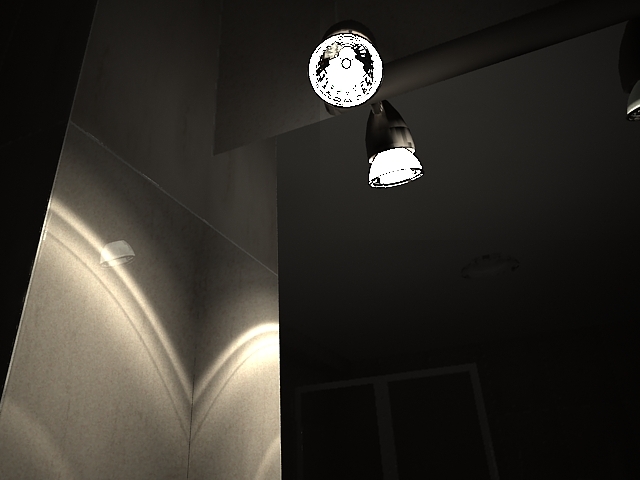 El truco para que parezca que la halógena de la fotografía tiene luz propia, es metiendo una luz en las mismas coordenadas que la fotometrica, y excluir todos los objetos menos la halógena por dentro, así conseguiremos este efecto, aunque no está perfecto, es un ejemplo.