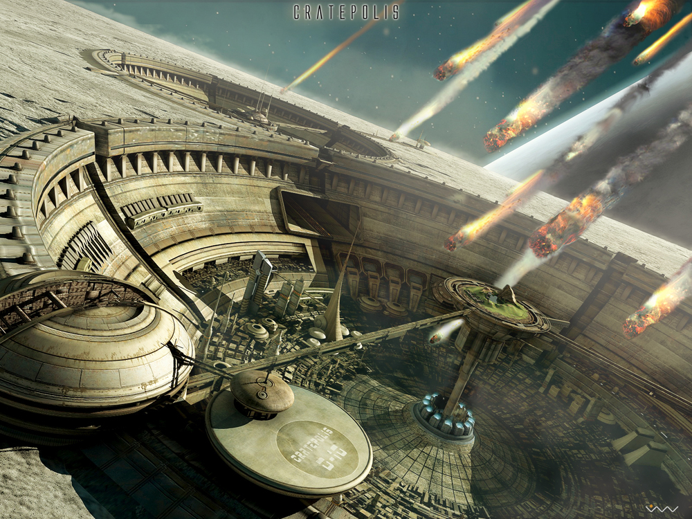 Hola a todos, esta es la primera imagen que subo al portal se trata de una escena futurista la denomine cratepolis ciudades en los cráteres de la luna, espero les guste.