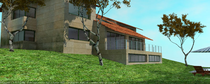 Hola de nuevo a todos. Os dejo con un exterior que estoy haciendo con max 9y Vray. La verdad, es que me gustaría saber dónde encontrar un buen tutorial de cómo se trabajan las capas en Adobe Photoshop, puesto que me gustaría utiltzar esa técnica.