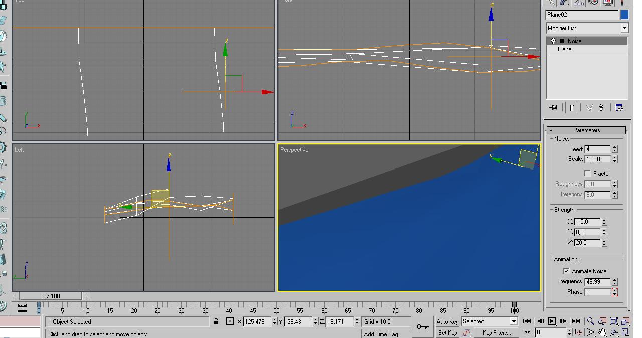 Estoy empezando a creer que nos estas tomando el pelo -_- Sinceramente te aconsejo que tomes un curso básico de 3ds Max, por lo visto estas en 0 y no tienes esa cosa que tiene la gente autodidacta. Te aconsejo que juegues con los valores que te dan los modificadores, no es cuestión de aplicarlos y decir que no se puede, como te dijeron, es imposible que consigas ondas con tan pocos polígonos, eso es cuestión de lógica. Mencionas que no consigues el reflejo, lo que me deja mucho que pensar porque no has mostrado un render, ni tu editor de materiales, obviamente el reflejo lo vas a ver en tu render.