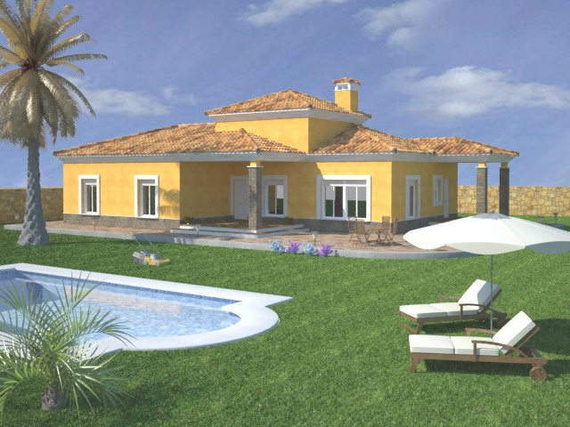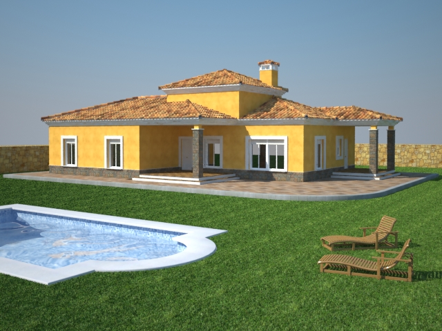 Bueno aquí os dejo el chalet que tengo en proceso para ver que os parece, a mí personalmente no me convence cómo me ha quedado el césped, y bueno el xalet no lo veo realista por decirlo de alguna manera, consejos para darle mayor realismo a la imagen por favor.