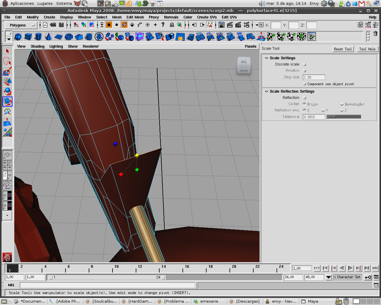 Estoy aprendiendo un poco de modelado y algo de texturas, utilizo Maya 2008 porque mi so es debían y es el único compatible, al menos el más sencillo de instalar. He utilizado XSI|Softimage sobre Windows, pero ya me a acostumbrado a Maya y la verdad es que me encanta, aunque a veces me vuele loco.