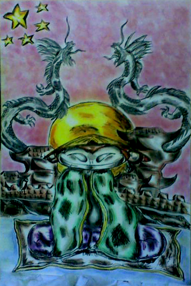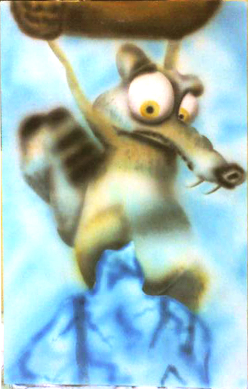 El Scrat está hecho con aerografía y la de China está hecho con técnica mixta espero comentarios. Gracias.