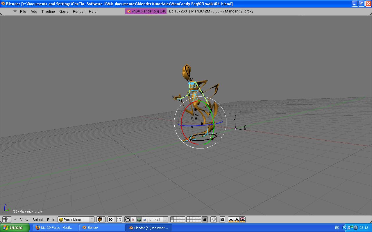 Buenas. Visto el éxito de la primera duda no creo que nadie conteste, pero al menos lo intento. Estoy realiando el tutorial de Walk-cycle, y ya estoy finalizando el mismo. El problema me surge en el penúltimo video, en el que explica las utilidades del NLA para repetir el ciclo. Una vez convertido a una acción, modificado el final de la animación y también multiplicarlo, lo que queda es decirle a Blender el bone que marca el offset. Bueno pues marco el bone torso como offset y al marcarlo no me realiza las animaciones correctamente. Los brazos y piernas se van para un lado diferente, y hacen lo parecido a la imagen.