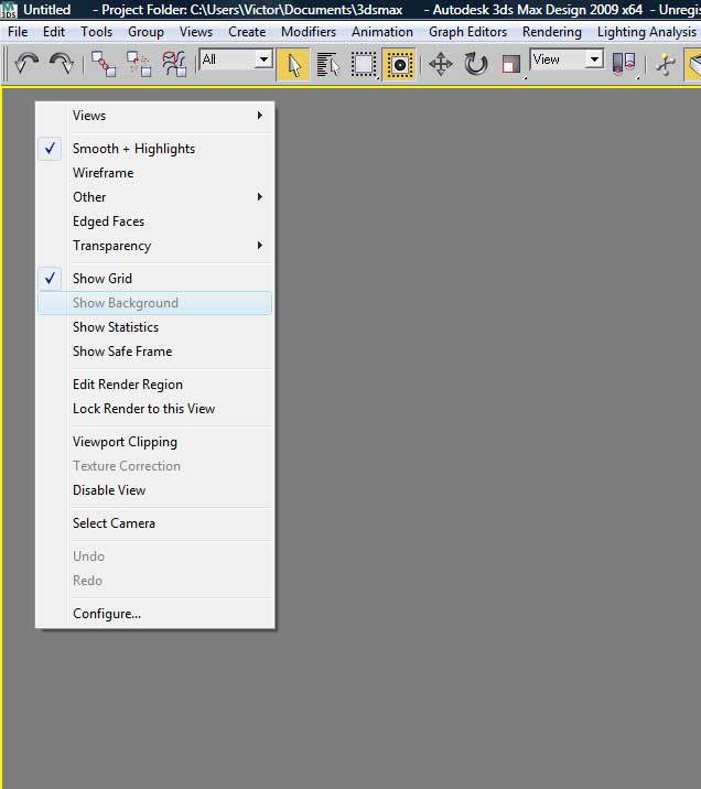 Ante todo muchas gracias por leer este mensaje. Estoy haciendo un trackeo con el PFTrack y al exportar el (*.ms) con los movimientos de cámara para el 3dsmax, todo funciona bien, la cámara se anima correctamente, excepto que no me aparece el background (con el archivo de video) como fondo y, por lo tanto, no puedo trabajar sobre la película. Al principio me aparece disponible la opción de mostrar el fondo, pero nada: cuando la selecciono, sigue sin mostrármelo. Incluso si lo vuelvo a intentar, la opción aparece atenuada, tal y como muestro en la imagen.