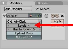 Volvemos al panel modifiers, y presionamos el botón que dice Apply, con esto aplicamos el suavizado para que los vértices que solamente simulaba se vuelvan reales, tendremos una esfera con muchos vértices.