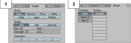 Nota: el Sculpt Mode, solamente funciona cuando hay muchos vértices ya que para las deformaciones son necesarios.