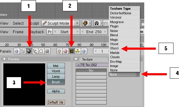 3. Vamos al botón de brush, donde se encuentran todas las texturas del pincel.