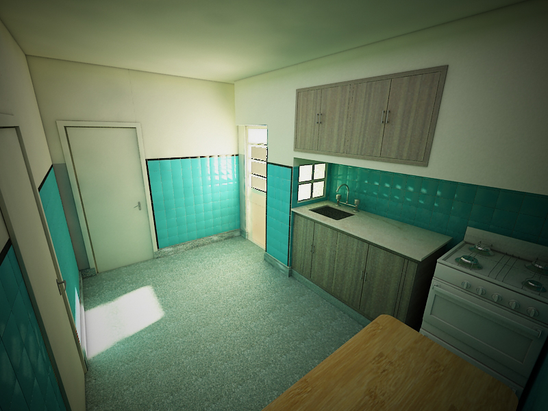 Hola gente, tengo un problema, y no sé cómo resolverlo, ya que este es mi 5 render en Vray, y se lo básico. En la imagen verán que del lado derecho hay una puerta con ventanas por la cual pasan los rayos de luz, miren detenidamente en las ventanas, hay unas líneas negras que no sé por qué aparecen así, por favor ayuda.