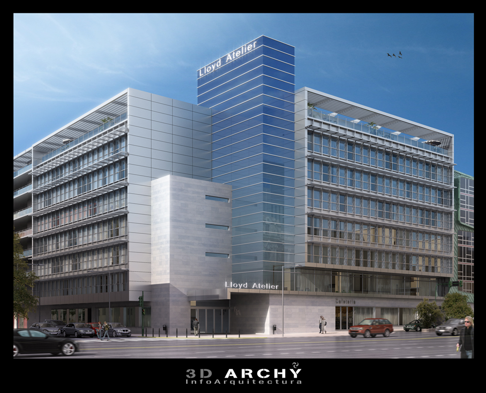 Bueno, Vray Sun, mensaje en Adobe Photoshop, el asfalto tiene esa reflexión por una cuestión de gusto efectivamente (al estilo de las acuarelas de antaño), en cuanto a la reflexión de los cristales no sé muy bien a qué te refieres exactamente Boanner, en la fachada derecha del edificio las lamas que vuelan proyectan una sombra rayada sobre la carpintería, tras realizar varias pruebas de orientación del sol, esta es la que mejor quedaba. Gracias y un saludo a todos.