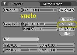 Importante: para que las sombras se puedan ver en el suelo hay que presionar en el plane emisor el botón traslado, o sea que hay que crear un nuevo material.