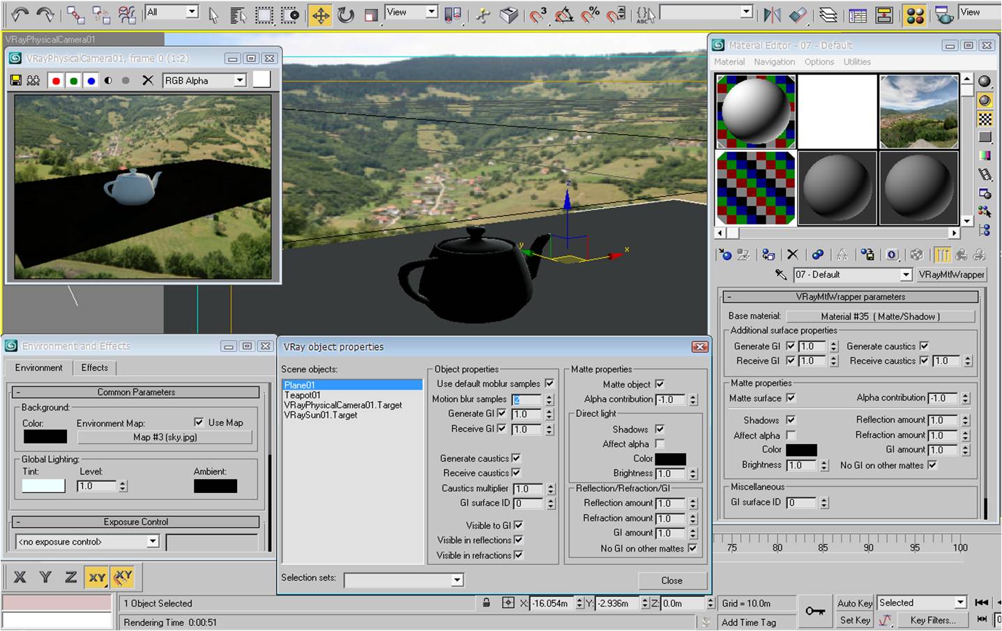 Y listo tu material solo renderiza la sombra lo demás no si no quieres usar material para el road usa Camera map en difuso para que tome la imagen que tienes de fondo.