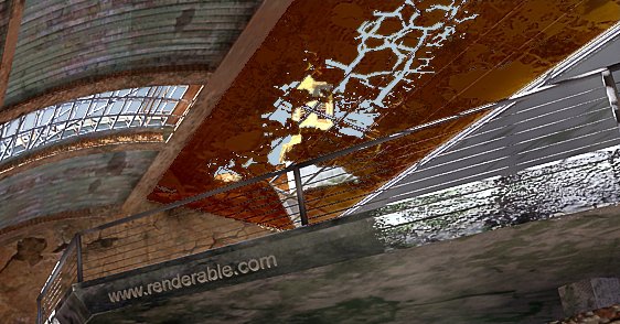 Me encanta el trabajo, las texturas están excelentes. Te hago una sola observación: ese techo de chapa tremendamente corroído tiene algunas partes que se encuentran sin sustento aparente (flotan), da la apariencia de tener más grosor que el que debiera y pareciera ser de cobre (por el color de la herrumbre) y no de chapa de hierro galvanizada. En el Adobe Photoshop le cambiaría el matiz.
