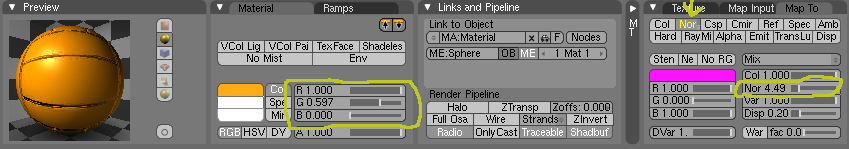 Ya tenemos un ejemplo de relieve. Si quieres variar ese relieve solo tienes que probar a subir o bajar el valor de la barra Nor en la ventana map to. También puedes variar el color y ponerle alguna textura.