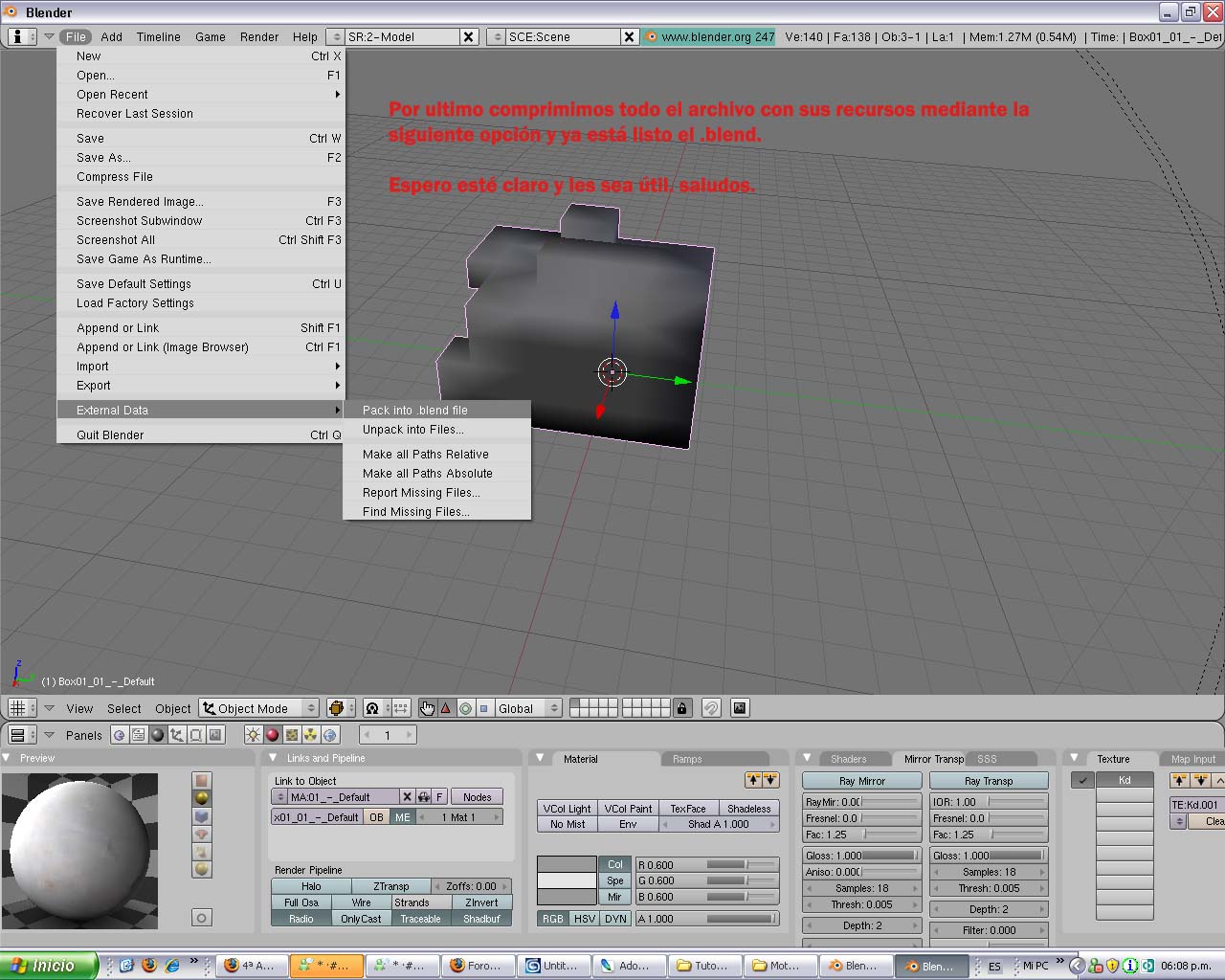 descargas útiles, tutoriales y manuales: comunidad Blender Game Engine canguro3d. tutoriales Blender Game Engine canguro3d (se requiere registro). videojuego estilo GTA de físico molón (.blend). tutorial/template/. Blend para mover vehículo en el Game Engine. ejemplo. Blend de partículas para generar humo. sombras en tiempo real Blender Game Engine. ejemplo de inteligencia artificial bot 1 (.blend). ejemplo de inteligencia artificial bot 2 y ejemplo de shooter (.blend). varios tutoriales ge. documentación Game Engine. pasar modelos de 3ds Max a Blender.
