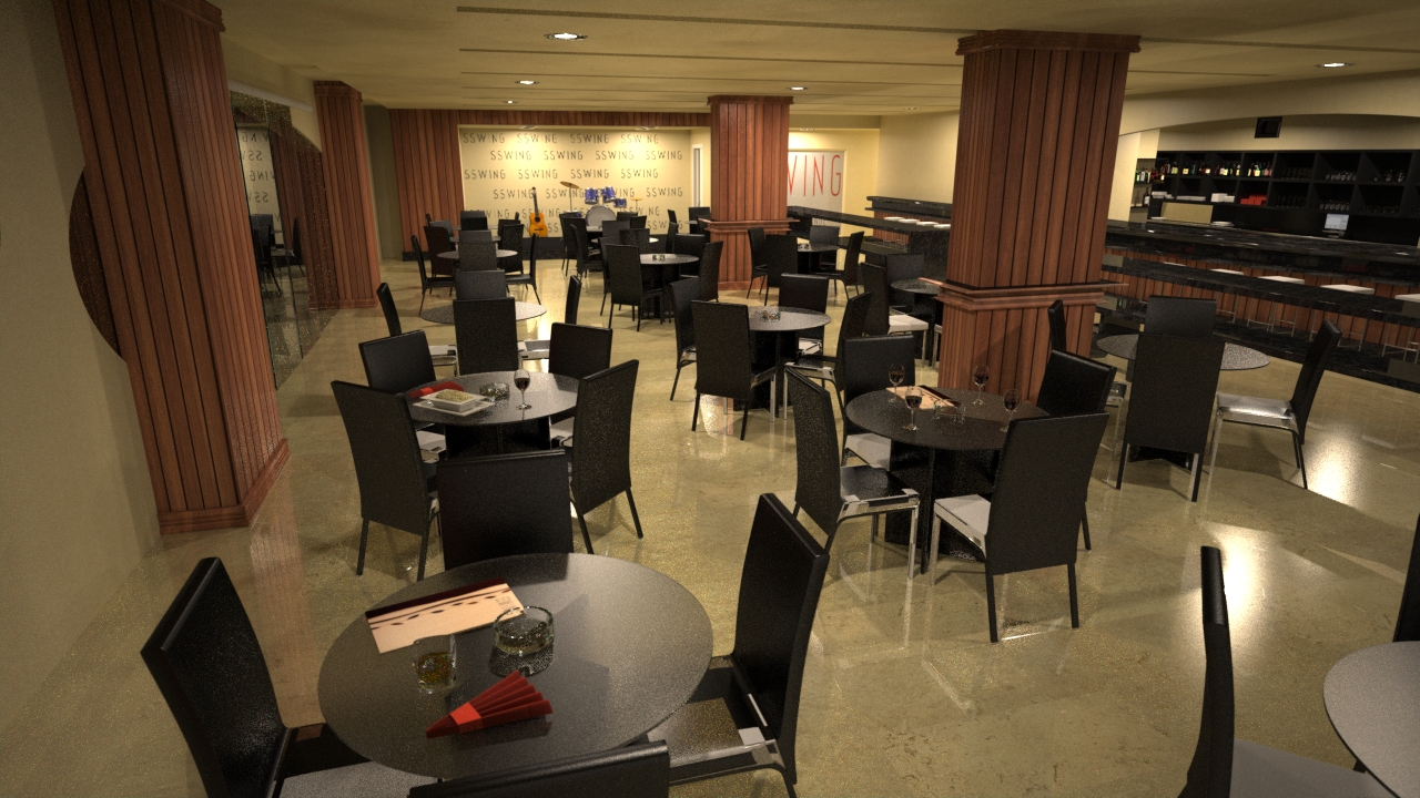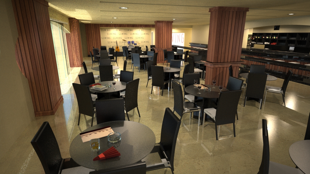 Muy buenas de nuevo. Como les dije aquí tienen las imágenes del restaurante, antes que nada, decir que no encuentro el logotipo de maxwell así que, pongo el de XSI. Como verán a continuación tenemos un problema de ruido bastante grande, las imágenes son obviamente de un restaurante, es nuestro primer proyecto y la primera vez que trabajamos con maxwell como motor de render, hemos sacado una media de 25 pases por fotografía, hablamos de unas 20 horas de render por fotografía, si le agregamos más pases el tiempo sería desorbitado.