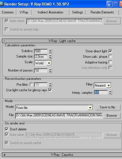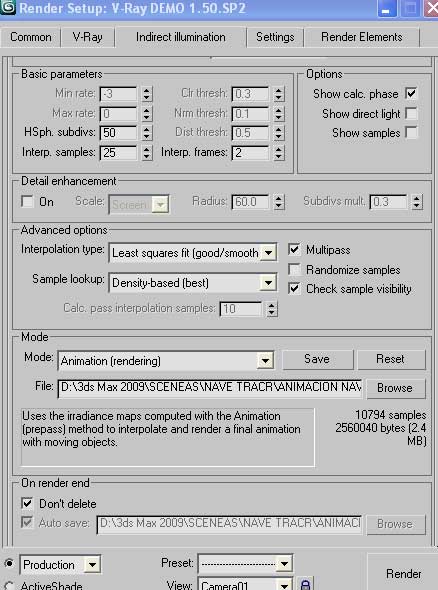 Buenas a todos, antes de nada, no sé si es el lugar dónde poner el mensaje, si no es correcto lo lamento. Estoy haciendo pruebas de animación con Vray 1.5 service pack 2 y max 2009, en la animación no es de cámara si no de objetos. Estoy siguiendo todos los pasos que explican en Spot3d, y también poner toda la escena en 0,0,0. He probado también lo que se hacía en antiguas versiones, hacer el cálculo de una serie de frames, etc.