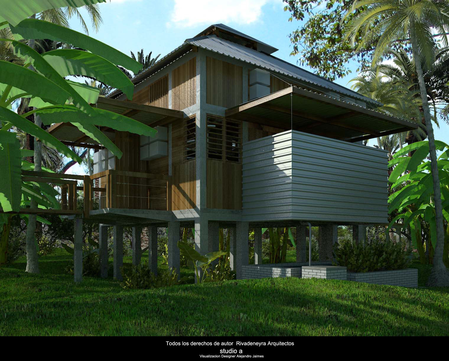 Hola goblin 77 los árboles de primer plano son 3d xforg y Evermotion solo le puse una fotografía del sitio en el fondo, guardas el canal alpha para qué tengas transparencia y listo pones la fotografía atrás, unos cuantos cambios y listo no tiene mayor problema y en cuanto porque madera, es de segunda mano de hecho, es la que se utiliza para la cimbra de las losas aquí en México, que mide 1.00x0.50 centímetros la casa esta modudala a eso, y en cuanto a la humedad del sitio te puedo decir que es caluroso más que húmedo, pero bueno, esto se hizo pensando en la economía de las personas de bajo recursos, tratando de ser lo más económico posible, y gracias por tus observaciones y comentarios