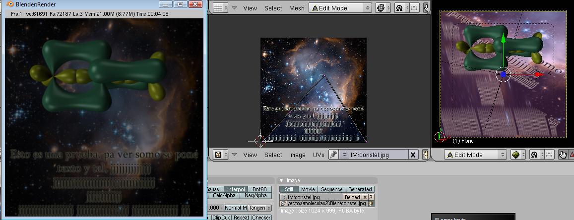 Me again. Pues resulta que tanto con el 2.45 como con el 2.47 me ocurre lo mismo. La escena es simple, tengo mi plano para poner la imagen y texto. La cargo, la pongo en modo extend, empaqueto las texturas, renderizo y perfecto. Pero cuando abro el juego (en el ejecutable aparte o en Blender mismo, es igual) me aparece la textura repetida. Además, si uso el mínimo y máximo para hacerle el crop a la imagen, en el render si se aplica, pero no en el game-engine.