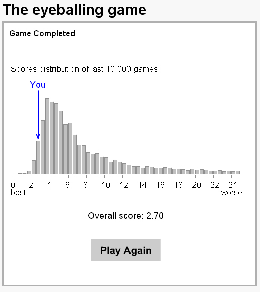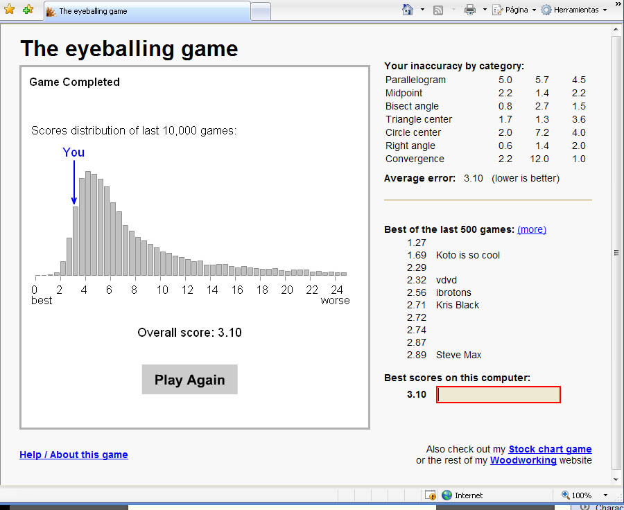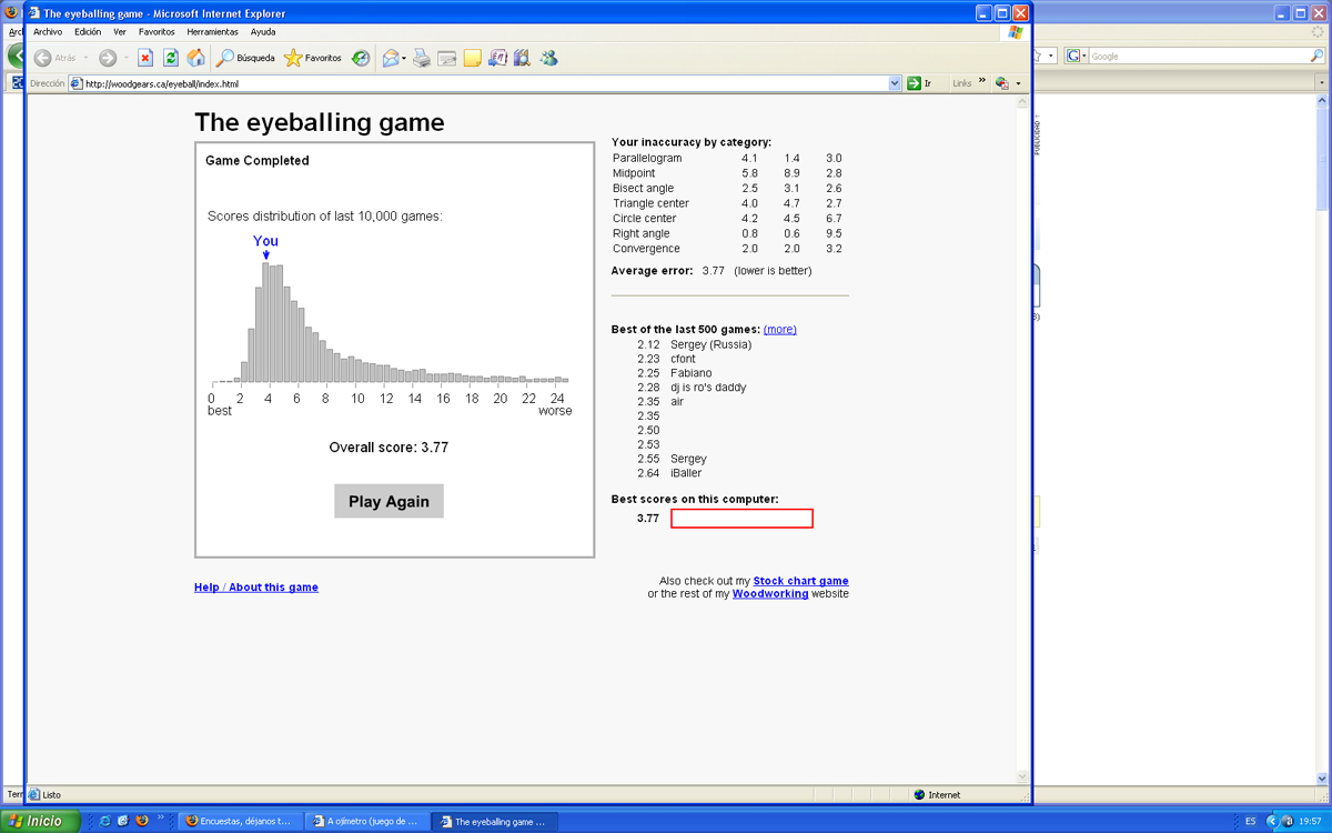 De tres intentos, estos resultados (por orden). En el primero empecé como en broma, en el segundo me concentré y en el tercero ya estaba harta.