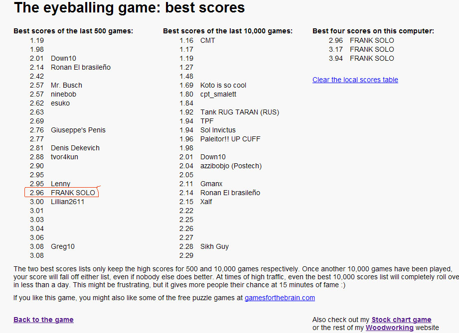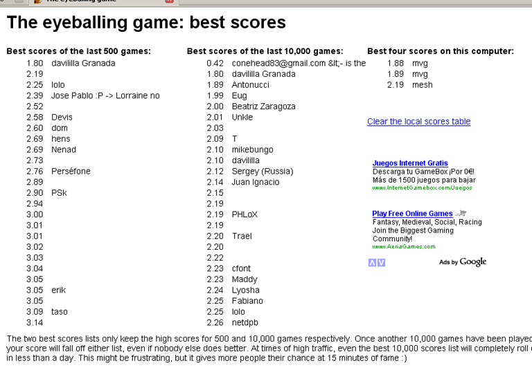 Jeogiomar, en otro foro en el que puse el enlace a este juego, tradujeron unas explicaciones que, aparecen en los listados de los últimos 500 y últimos 10000 juegos y más o menos se deducía, que a causa de la globalización pueden estar jugando tantas personas en el mundo, que la lista cambia con muchísima rapidez.