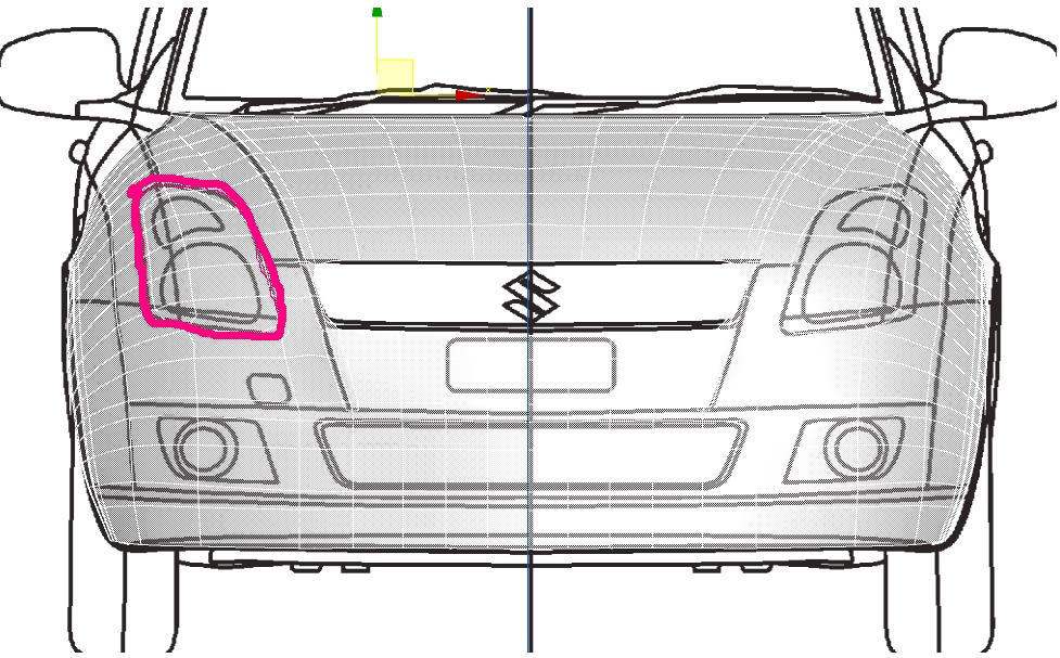 Como puedo hacer para modelar estos faros delanteros? Es difícil utilizando la herramienta cortar, quizás están mal ubicado lo vértices o los Edges, alguien tiene alguna idea de cómo es posible diseñar esta parte del auto.