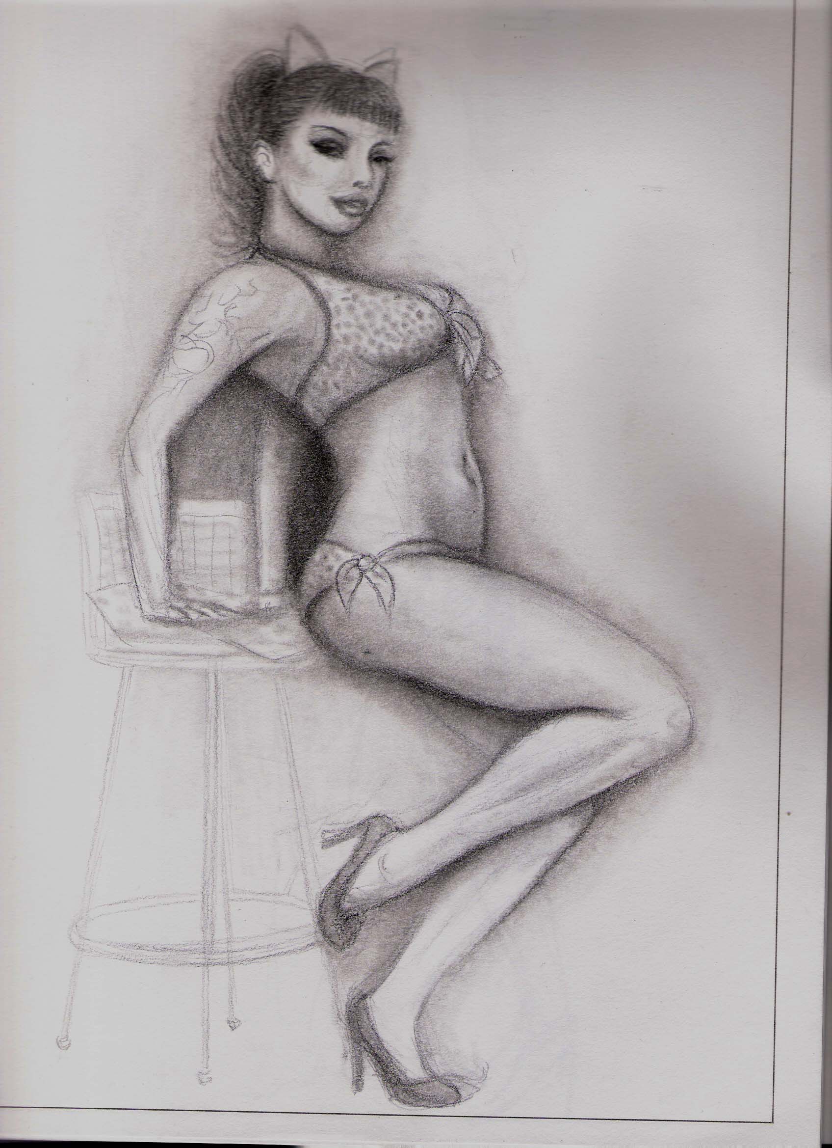 Muy buena la pin up, un detalle que comentes que es de un apunte de Masuimi. Le has dado al dibujo una línea muy suave y natural, mola un montón, sí, joven.