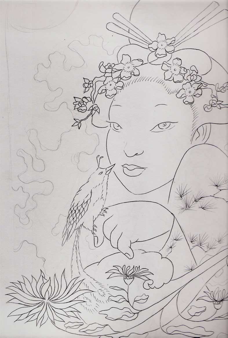 Muy bueno el dibujo a lápiz Amano (, esto parece redundante). Yo le aplicaría un color muy suave con acuarelas, puede quedar muy bonito.