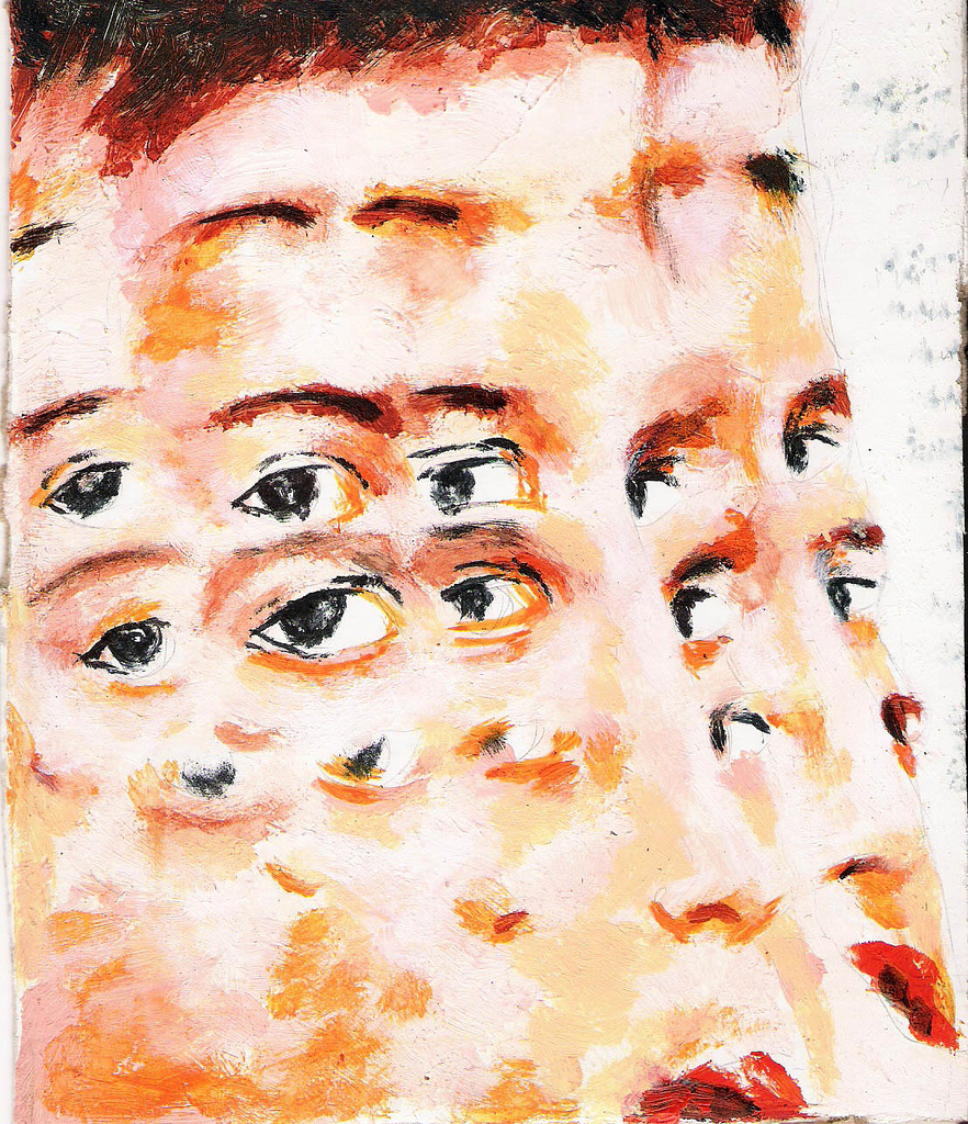 Bueno, dibujos viejos más o menos rápidos y un par de acrílicos, viejos también, son pequeñitos, están pintados sobre cartón
