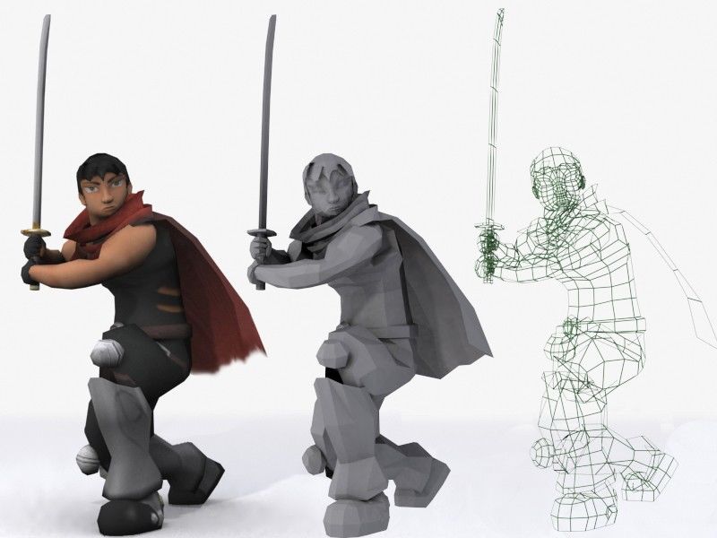 Hola, este es un personaje en Low/medium poly que tengo medio terminado. Como veréis las texturas no son mi fuerte, tiene 2300 polys.