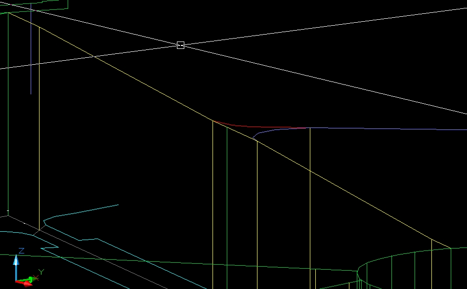 Me he dibujado líneas auxiliares con una cota z determinada según unos puntos en cada intersección de calle. Pero ahora bien, cuando hago esto, uno los puntos con z de cada línea con una polilínea 3d o una Spline para tener un eje de extrusión.