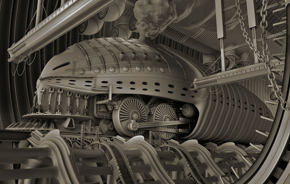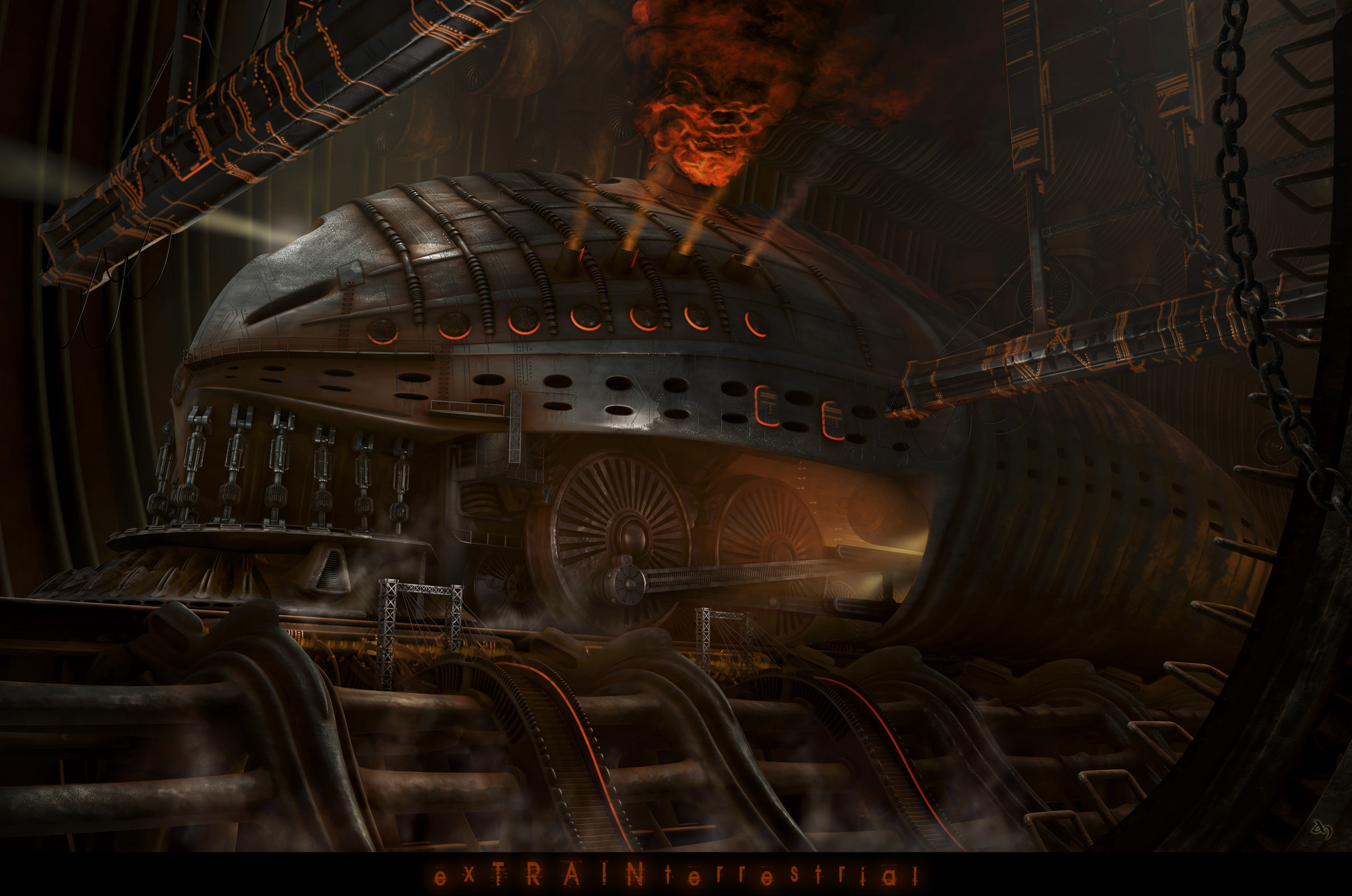 Hola, aquí os dejo mi último trabajo, un descomunal y terrorífico tren surgido de las mismísimas entrañas del infierno, un pequeño homenaje a giger, Lovecraft y Bilal.