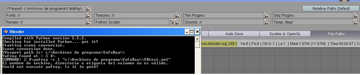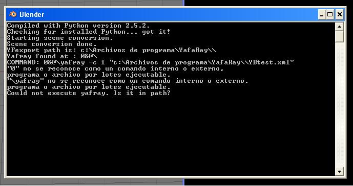 Tienes algún problema con las rutas fijo. Mírate bien lo que explican aquí. [URL="http://www.Yafray.org/"]Yafray, Yafray installation help.